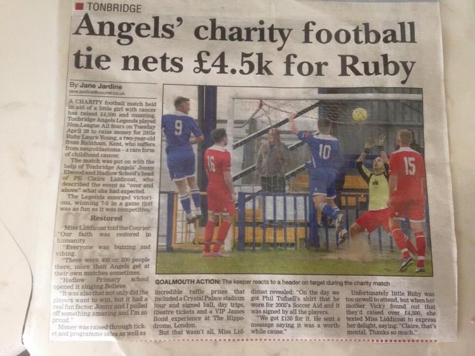 Our charity football match saw professional and Non league all stars come together to play at TAFC to raise funds for #HELPRUBYLAURASMASHCANCER.