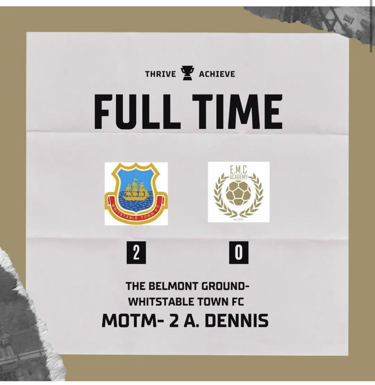 Final score 2-0 Whitstable FC, a victory deserved from a lacklustre Scholars performance who are in desperate need of a reaction next time out